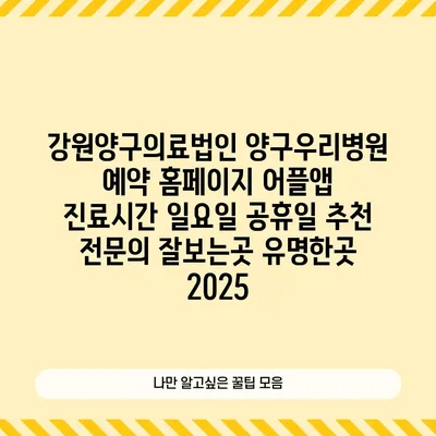 강원양구의료법인 양구우리병원 예약 홈페이지 어플앱 진료시간 일요일 공휴일 추천 전문의 잘보는곳 유명한곳 2025