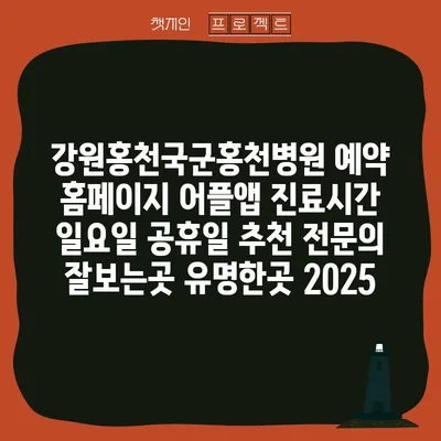 강원홍천국군홍천병원 예약 홈페이지 어플앱 진료시간 일요일 공휴일 추천 전연락 잘보는곳 유명한곳 2025 에 대해 자주 묻는 질문 TOP 5