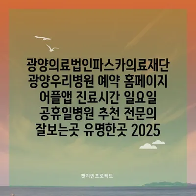 광양의료법인파스카의료재단 광양우리병원 예약 홈페이지 어플앱 진료시간 일요일 공휴일병원 추천 전연락 잘보는곳 유명한곳 2025 에 대해 자주 묻는 질문 TOP 5