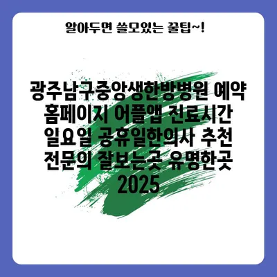 광주남구중앙생한방병원 예약 홈페이지 어플앱 진료시간 일요일 공휴일한의사 추천 전연락 잘보는곳 유명한곳 2025 에 대해 자주 묻는 질문 TOP 5