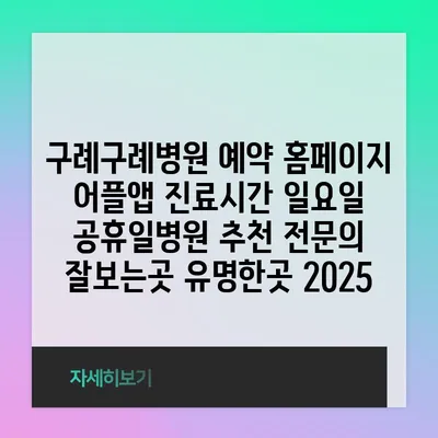 구례구례병원 예약 홈페이지 어플앱 진료시간 일요일 공휴일병원 추천 전연락 잘보는곳 유명한곳 2025 에 대해 자주 묻는 질문 TOP 5