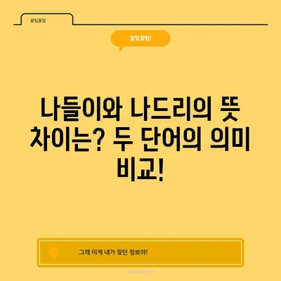 💡 나들이와 나드리의 의미 차이를 깊이 알아보세요. 💡