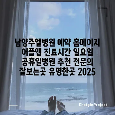 남양주엘병원 예약 홈페이지 어플앱 진료시간 일요일 공휴일병원 추천 전연락 잘보는곳 유명한곳 2025 에 대해 자주 묻는 질문 TOP 5