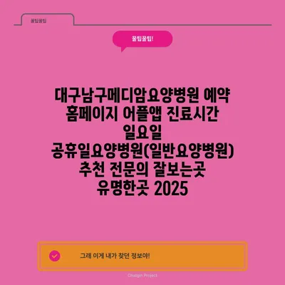 대구남구메디암요양병원의 진료시간과 예약 방법을 지금 바로 알아보세요!