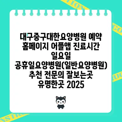 대구중구대한요양병원 예약 홈페이지 어플앱 진료시간 일요일 공휴일요양병원(일반요양병원) 추천 전문의 잘보는곳 유명한곳 2025