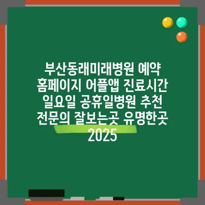 부산동래미래병원 예약 홈페이지 어플앱 진료시간 일요일 공휴일병원 추천 전연락 잘보는곳 유명한곳 2025 에 대해 자주 묻는 질문 TOP 5