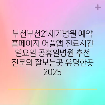 부천부천21세기병원 예약 홈페이지 어플앱 진료시간 일요일 공휴일병원 추천 전연락 잘보는곳 유명한곳 2025 에 대해 자주 묻는 질문 TOP 5