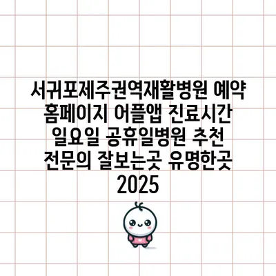 서귀포제주권역재활병원 예약 홈페이지 어플앱 진료시간 일요일 공휴일병원 추천 전연락 잘보는곳 유명한곳 2025 에 대해 자주 묻는 질문 TOP 5
