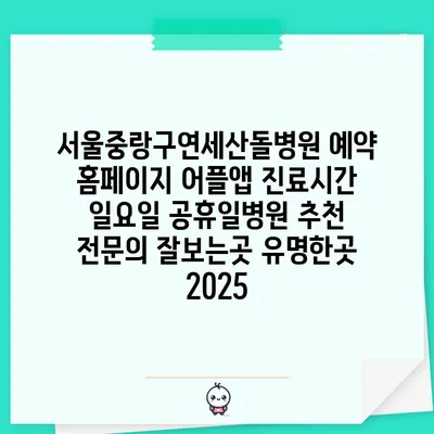 서울중랑구연세산돌병원 예약 홈페이지 어플앱 진료시간 일요일 공휴일병원 추천 전연락 잘보는곳 유명한곳 2025 에 대해 자주 묻는 질문 TOP 5