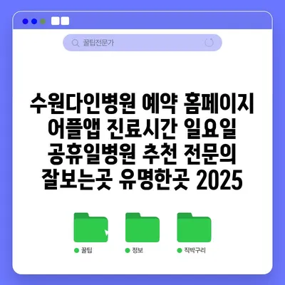 수원다인병원 예약 홈페이지 어플앱 진료시간 일요일 공휴일병원 추천 전연락 잘보는곳 유명한곳 2025 에 대해 자주 묻는 질문 TOP 5