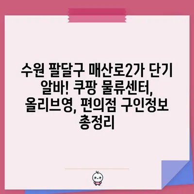수원 팔달구 매산로2가 단기 알바! 쿠팡 물류센터, 올리브영, 편의점 구인정보 총정리