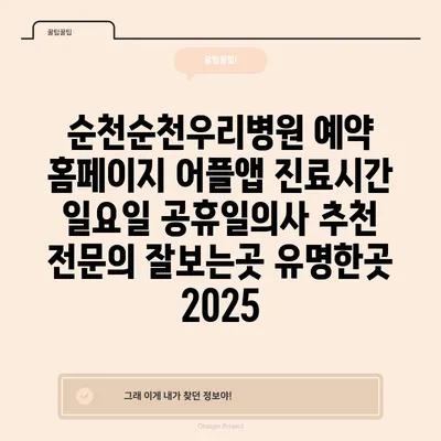 순천순천우리병원 예약 홈페이지 어플앱 진료시간 일요일 공휴일의사 추천 전연락 잘보는곳 유명한곳 2025 에 대해 자주 묻는 질문 TOP 5