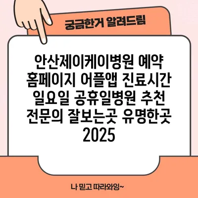 ✅ 안산제이케이병원의 진료시간과 예약 방법을 알아보세요.