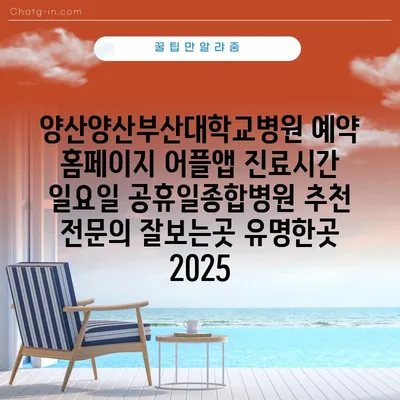 양산양산부산대학교병원 예약 홈페이지 어플앱 진료시간 일요일 공휴일종합병원 추천 전연락 잘보는곳 유명한곳 2025 에 대해 자주 묻는 질문 TOP 5