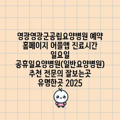 영광영광군공립요양병원 예약 홈페이지 어플앱 진료시간 일요일 공휴일요양병원(일반요양병원) 추천 전연락 잘보는곳 유명한곳 2025 에 대해 자주 묻는 질문 TOP 5