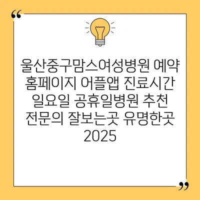 울산중구맘스여성병원 예약 홈페이지 어플앱 진료시간 일요일 공휴일병원 추천 전연락 잘보는곳 유명한곳 2025 에 대해 자주 묻는 질문 TOP 5