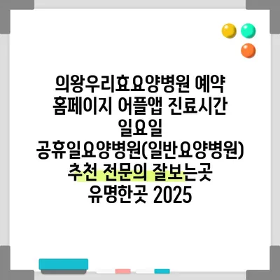 의왕우리효요양병원 예약 홈페이지 어플앱 진료시간 일요일 공휴일요양병원(일반요양병원) 추천 전연락 잘보는곳 유명한곳 2025 에 대해 자주 묻는 질문 TOP 5