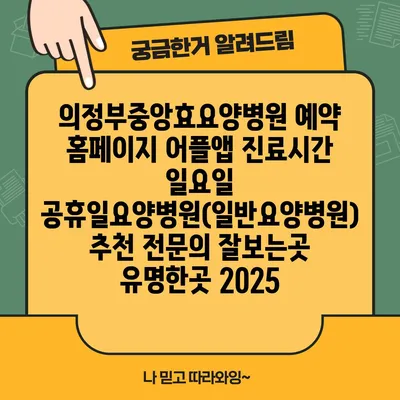 의정부중앙효요양병원 예약 홈페이지 어플앱 진료시간 일요일 공휴일요양병원(일반요양병원) 추천 전연락 잘보는곳 유명한곳 2025 에 대해 자주 묻는 질문 TOP 5