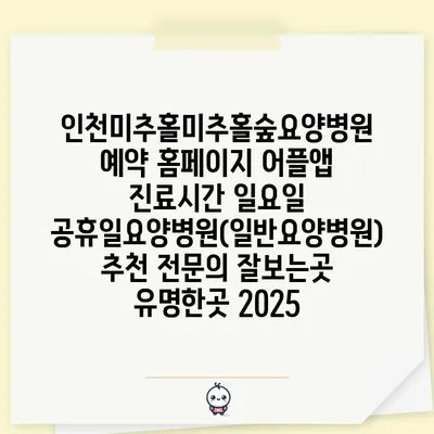 인천미추홀미추홀숲요양병원 예약 홈페이지 어플앱 진료시간 일요일 공휴일요양병원(일반요양병원) 추천 전연락 잘보는곳 유명한곳 2025 에 대해 자주 묻는 질문 TOP 5