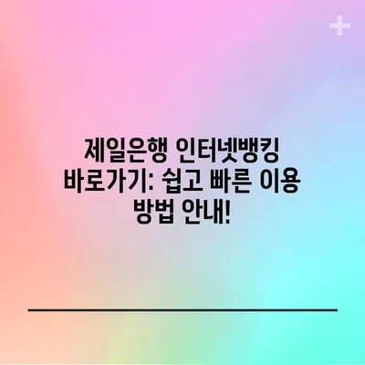 💡 제일은행 인터넷뱅킹 사용법을 자세히 알아보세요! 💡