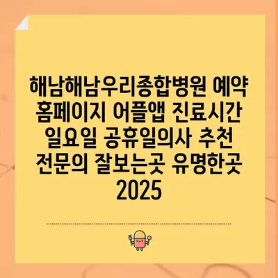 해남해남우리종합병원 예약 홈페이지 어플앱 진료시간 일요일 공휴일의사 추천 전연락 잘보는곳 유명한곳 2025 에 대해 자주 묻는 질문 TOP 5