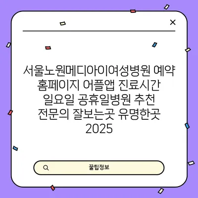 서울노원메디아이여성병원은 2025년에도 많은 분들께 사랑받는 여성 전문 의료 기관입니다. 예약은 홈페이지와 어플 앱을 통해 쉽게 할 수 있어 바쁜 일정에도 …