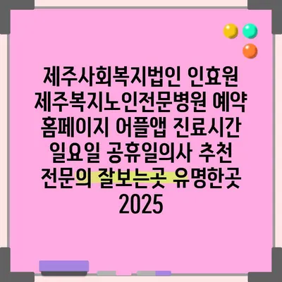 제주사회복지법인 인효원 제주복지노인전문병원 예약 홈페이지 어플앱 진료시간 일요일 공휴일의사 추천 전문의 잘보는곳 유명한곳 2025