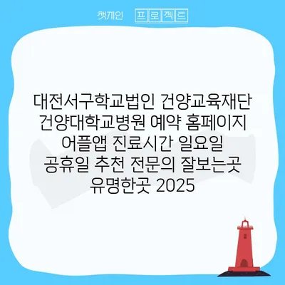 대전서구학교법인 건양교육재단 건양대학교병원은 내원 환자들에게 편리한 예약 시스템을 제공하고 있습니다. 공식 홈페이지와 어플앱을 통해 간편하게 진료 예약을 할 수 있어 …