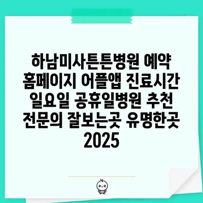 하남미사튼튼병원은 예약 홈페이지와 어플앱을 통해 간편하게 진료를 예약할 수 있는 시스템을 갖추고 있습니다. 변변한 진료시간으로는 평일과 주말을 포함하여 다양한 진료 …