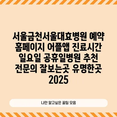 서울금천서울대효병원 예약 홈페이지 어플앱 진료시간 일요일 공휴일병원 추천 전문의 잘보는곳 유명한곳 2025