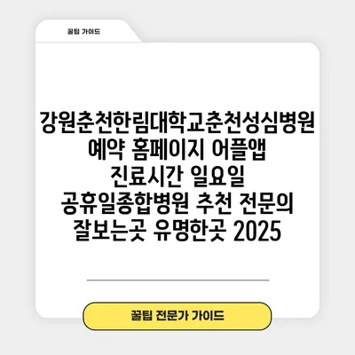 강원춘천한림대학교춘천성심병원은 예약 홈페이지와 어플앱을 통해 쉽고 빠르게 진료 예약을 할 수 있는 곳입니다. 이 병원은 진료시간이 유연하여 바쁘신 분들도 안심하고 …