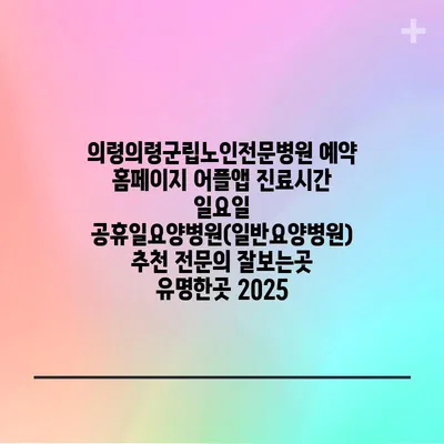 의령의령군립노인전문병원 예약 홈페이지 어플앱 진료시간 일요일 공휴일요양병원(일반요양병원) 추천 전문의 잘보는곳 유명한곳 2025