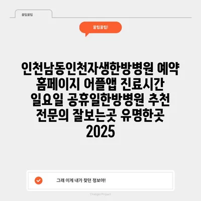 인천남동인천자생한방병원 예약 홈페이지 어플앱 진료시간 일요일 공휴일한방병원 추천 전문의 잘보는곳 유명한곳 2025