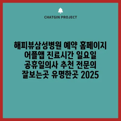 해피뷰삼성병원은 예약 홈페이지와 어플앱을 통해 손쉽게 진료를 예약할 수 있는 병원입니다. 진료시간은 월요일부터 토요일까지 운영되며, 일요일과 공휴일에는 휴무입니다. 특히 유명한 …
