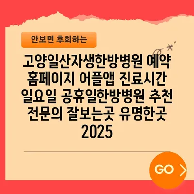 고양일산자생한방병원은 예약 홈페이지와 어플앱을 통해 간편하게 진료를 예약할 수 있는 곳입니다. 이 병원은 일요일과 공휴일에도 운영되어, 바쁜 일상 속에서 한방 …