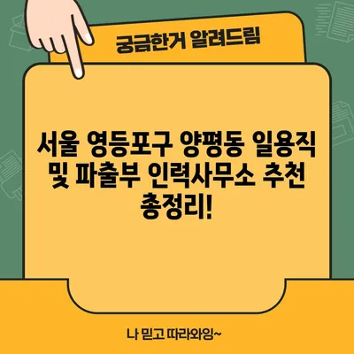 서울 영등포구 양평동 일용직 및 파출부 인력사무소 추천 총정리!