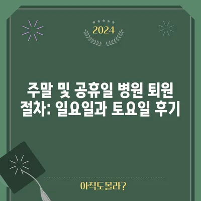 병원 일요일 퇴원 절차 후기 주말 퇴원 토요일 퇴원 공휴일 퇴원 병원 일요일 퇴원 절차와 관련하여 많은 분들이 궁금해하십니다. 특히 …