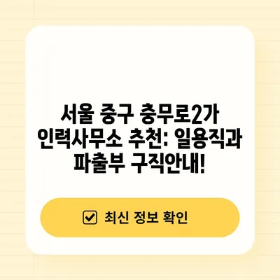 서울 중구 충무로2가 인력사무소 추천 일용직 파출부 노가다 직업소개소 노인일자리 구직안내 서울 중구 충무로2가는 일용직 구직자들에게 다양한 기회를 제공하는 지역입니다. …