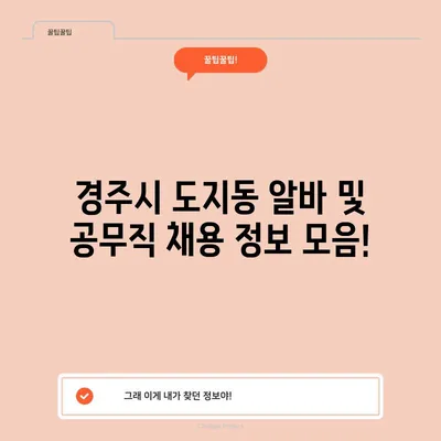 경주시 도지동 알바 및 공무직 채용 정보 모음!