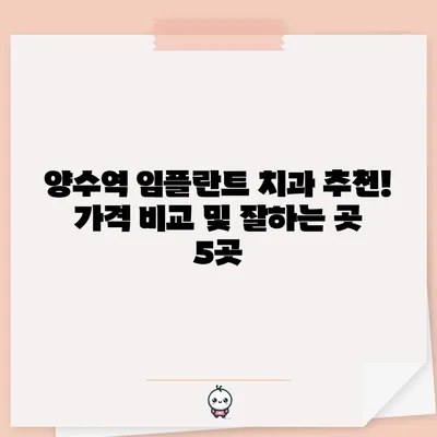 양수역 임플란트 치과 추천 가격 비교 및 잘하는 곳 5곳 양수역에서 임플란트 치과를 찾고 계시다면, 이 블로그 포스팅은 당신이 필요로 …