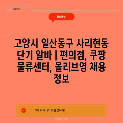 고양 일산동구 사리현동 알바몬 일자리 사이트 편의점 문서작성 단기 아르바이트 쿠팡물류센터 올리브영 채용안내 고양 일산동구 사리현동에서 알바몬 일자리 사이트를 통해 …