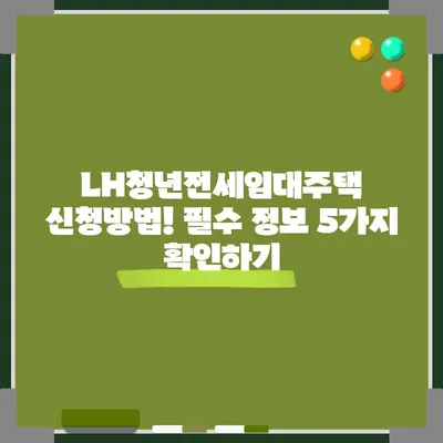 LH청년전세임대주택 신청방법 필수 정보 바로 확인 LH청년전세임대주택 신청방법과 자격 조건을 자세히 알아보고, 필수 정보를 확인하세요. 청년들의 주거 부담을 경감하는 유용한 …