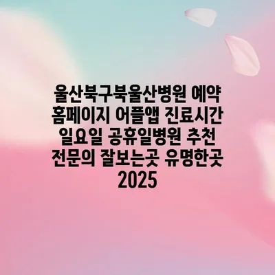 울산북구북울산병원은 예약 홈페이지와 어플앱을 통해 간편하게 진료 예약을 할 수 있는 병원입니다. 진료시간은 평일에 따라 다르지만, 주말 및 공휴일에도 운영하고 …