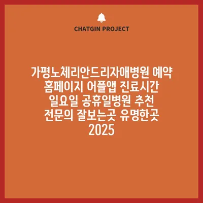가평노체리안드리자애병원은 환자분들에게 최적의 진료 서비스를 제공하는 유명한 병원입니다. 예약은 홈페이지 및 어플앱을 통해 간편하게 할 수 있으며, 진료시간 확인도 손쉽습니다. …
