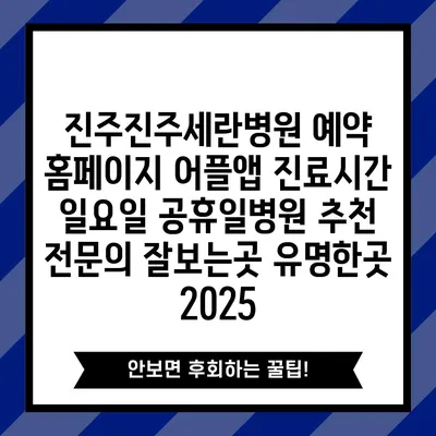 진주진주세란병원은 2025년에도 지역 주민들에게 최고의 의료 서비스를 제공하는 전문 병원으로 자리매김하고 있습니다. 이 병원은 예약 홈페이지와 어플 앱을 통해 간편하게 …