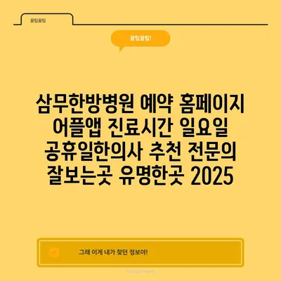 삼무한방병원 예약 홈페이지 어플앱 진료시간 일요일 공휴일한의사 추천 전문의 잘보는곳 유명한곳 2025