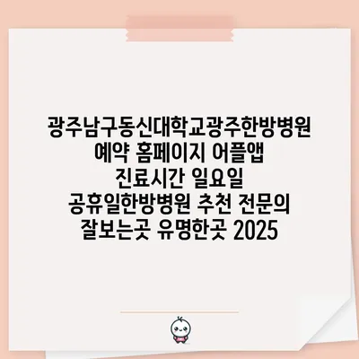 광주남구동신대학교광주한방병원 예약 홈페이지 어플앱 진료시간 일요일 공휴일한방병원 추천 전문의 잘보는곳 유명한곳 2025
