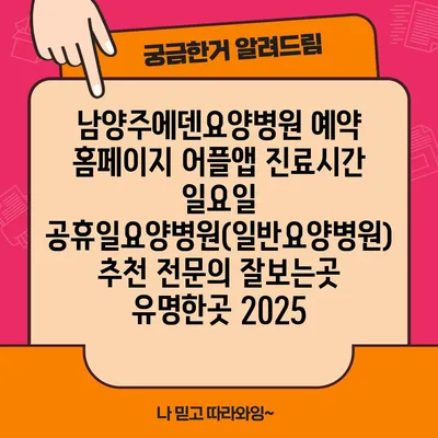 남양주에덴요양병원은 예약 홈페이지와 어플 앱을 통해 간편하게 진료 예약을 할 수 있는 곳입니다. 특히 진료시간이 유연하게 운영되어, 일요일 및 공휴일에도 …