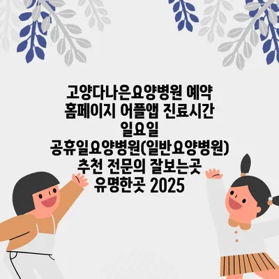 고양다나은요양병원 예약 홈페이지 어플앱 진료시간 일요일 공휴일요양병원(일반요양병원) 추천 전문의 잘보는곳 유명한곳 2025