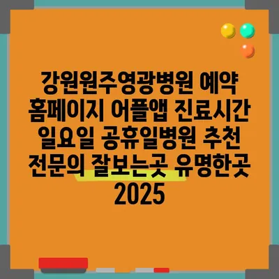 강원원주영광병원은 2025년에도 여전히 믿을 수 있는 의료진과 함께 최상의 서비스를 제공하고 있습니다. 병원 예약은 홈페이지와 어플 앱을 통해 간편하게 할 …